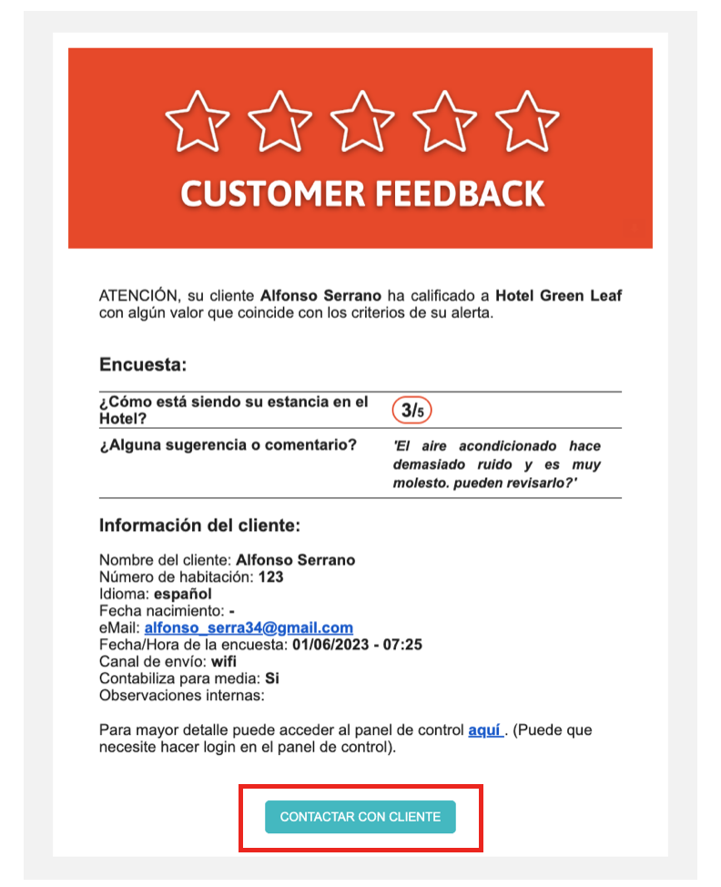 - En los emails que se reciben de alertas de feedback, hay un botón de contactar:
