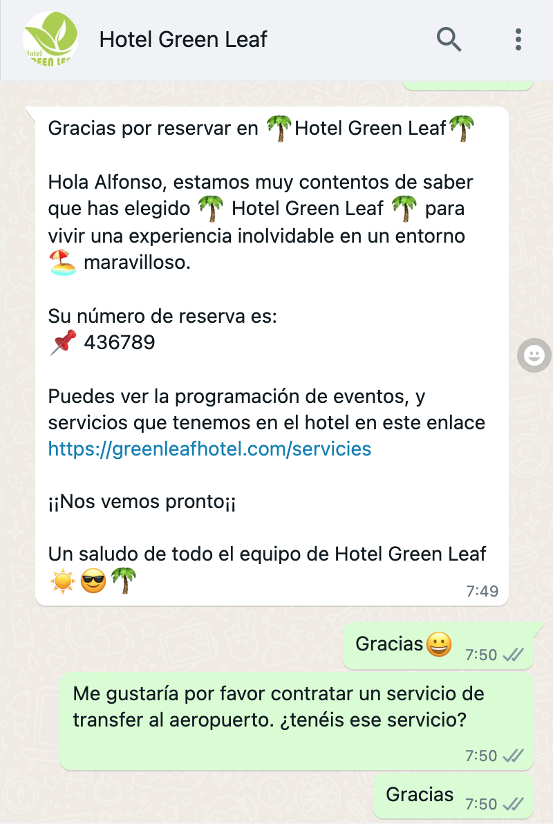 Es muy probable que nuestros clientes respondan a los comunicados que les enviamos de forma automática y así inicien una conversación con el hotel. Esto es muy común con los automatismos de whatsapp.