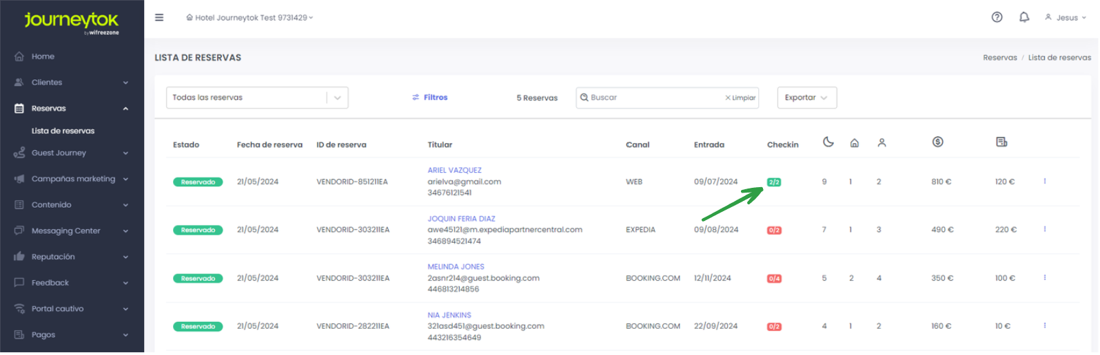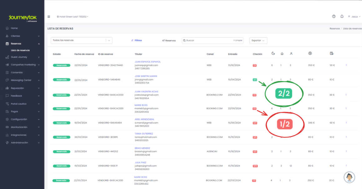 - Verde: Si todos los huéspedes de la reserva han realizado el proceso al completo.