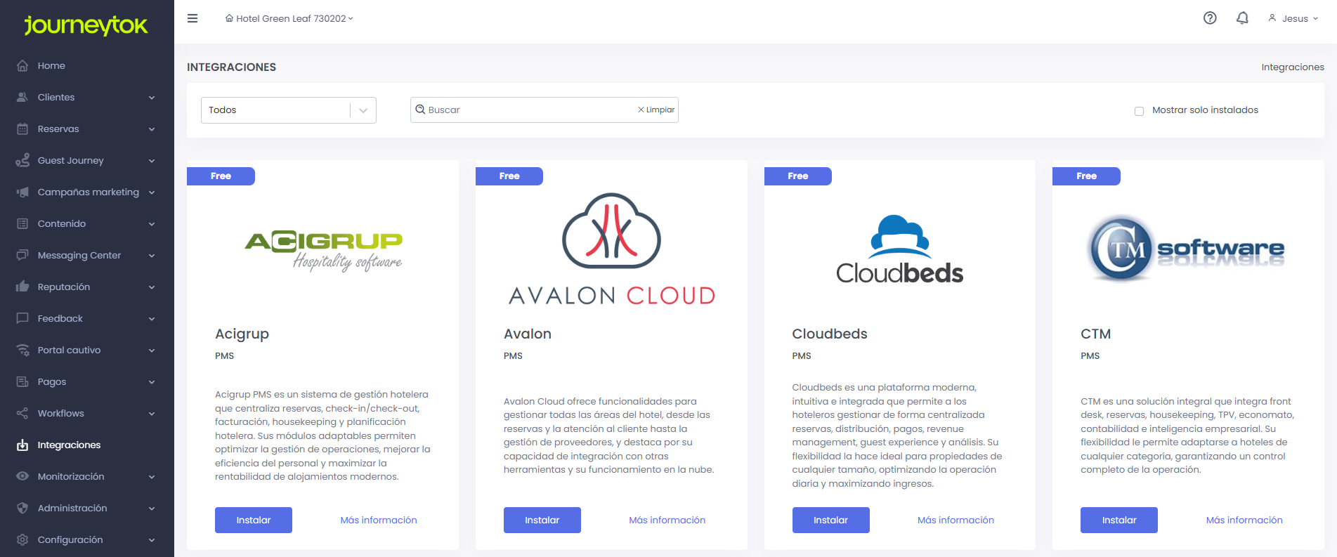 Activación desde el Marketplace de Cloudbeds. En el panel de Cloudbeds busca la sección de "Apps & marketplace". Localiza el buscador de Apps, e introduce el nombre de la App "Journeytok" Cuando hayas encontrado la app de Journeytok pulsa en "Learn ...